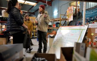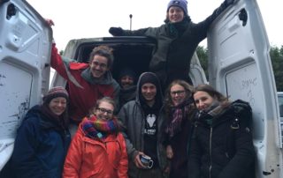 Découpe du bois avec l’association Woodyard pour se réchauffer, cuisiner, sécher des vêtements, se laver…